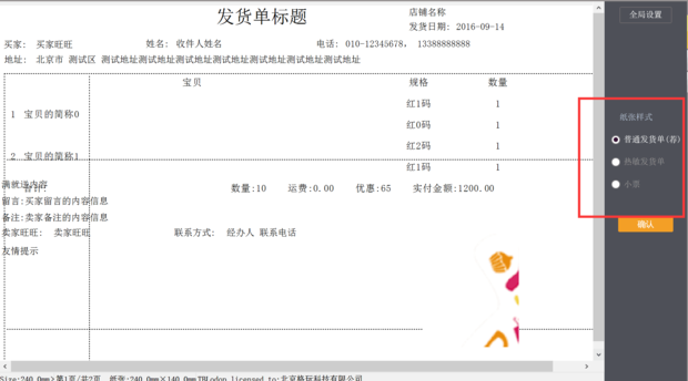 您可以使用快递助手打印,也可以使用热敏纸。快递助手有一个专门为热敏纸设计的模板。您可以直接选择热敏送货单进行打印。支持批量打印。如图所示:
