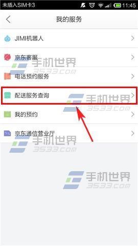 2)进入个人中心后,点击“我的服务”一项,然后选择“配送服务查询”。(如下图所示)