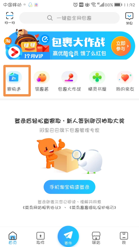 目前,菜鸟可以选择运达快递、中通快递和申通快递。用菜鸟裹裹,选择快递上门取件快递的具体步骤如下: