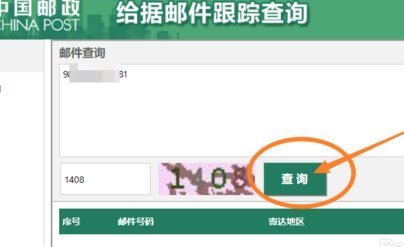 5、在[邮件查询]处粘贴我们的快递号码,输入验证码,点击查询