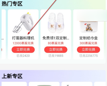 4、热门专区的商品可以看到,然后滑动列表,找到想要兑换的商品,点击立即兑换即可。