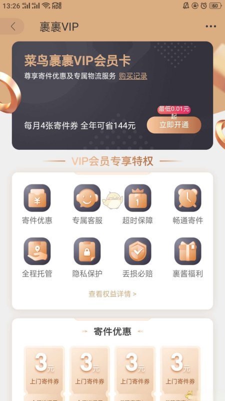 菜鸟包裹平台有会员,经常使用菜鸟包对于那些包裹收发的朋友来说,打开它会员可以享受很多特权好吧,菜鸟包裹怎么打开vi?p呢?有些小伙伴还不太清楚?。下面我就给大家带来菜鸟包裹会员的开通方法,希望对大家有所帮助。