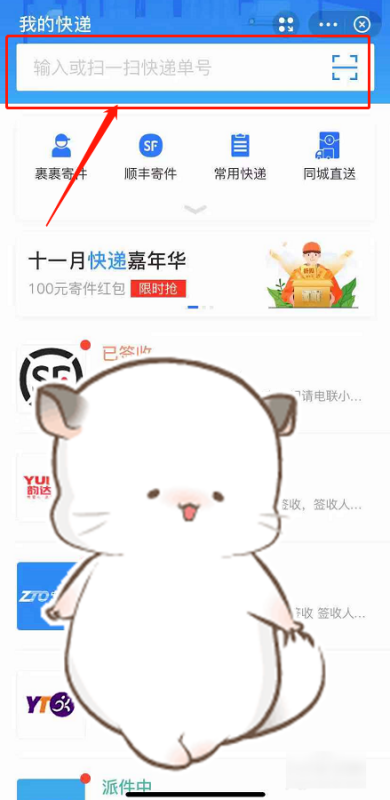 2、搜索快递查询,点击搜索结果,快递物流查询。