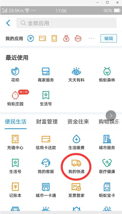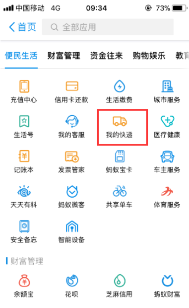 2、首先打开支付宝APP,点击[我的快递]选项。