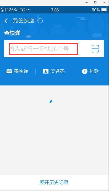 4、此时会弹出【查快递】页面,然后我们将运单号输入本页的【运单号】栏。