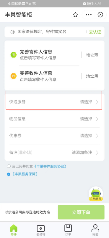 5、您可以直接将包裹带到丰巢柜扫描邮件,或在支付宝–我的快递在这里找到丰巢先下单;