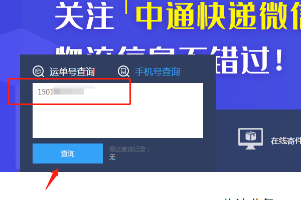 中通快递只有订单号,可以用手机号查快递物流的方法是: