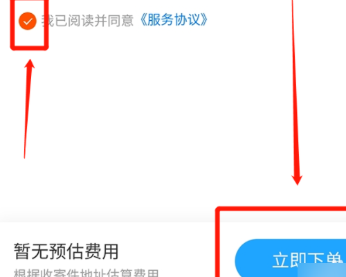 4、选择快递上门的时间,在货物类型后检查同意的条款,点击“立即下单”。