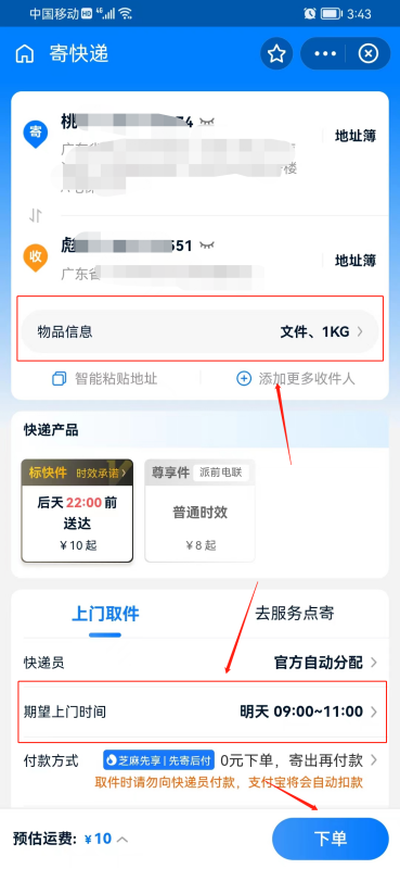 网上下单寄件也能看到大概的运费是多少,只需等快递上门取件寄走,比较方便。