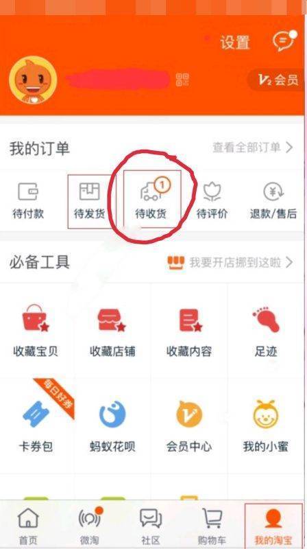 第三步、在点击“待收货”的“我的淘宝”界面。