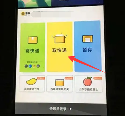 2、丰巢来到取件地点快递柜可以在柜子里看到电子屏幕屏幕上有“取快递”选项,点击此选项。