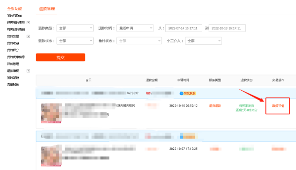 3、找到订单,点击右侧的[服务细节];