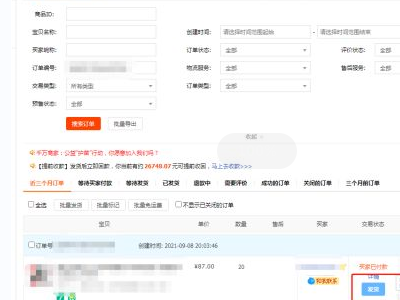 2、在已售出的婴儿中搜索订单号,找到需要查看的订单,并点击送货按钮进入送货页面。(如下图所示)