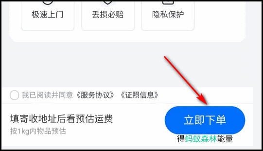 5、点击立即下单,等待快递员上单取门即可。如下图所示。