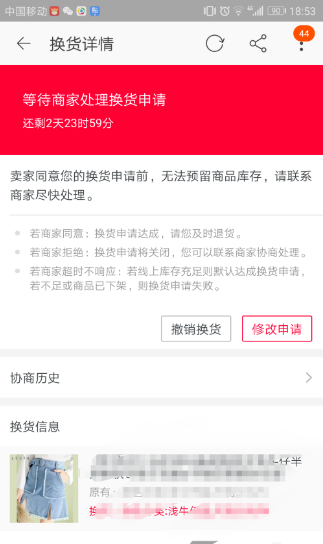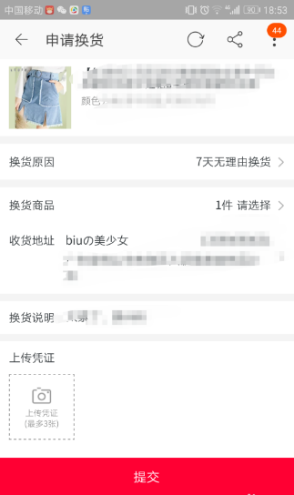 、点击换货输入换货申请,修改换货套餐,点击提交。
