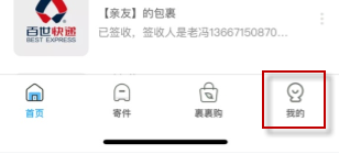 1、打开淘宝我的淘宝界面APP,找到并找到点击菜鸟。