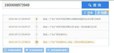 你好,我刚在官网上查了一下。你快递的现状是2014年-04-11 21:08:32到达:广东广州分配中心 发送:河北石家庄配送中心,云达有时是这样的,更新有点慢,可能在下午或晚上更新,建议您咨询卖家或云达客户服务。希望采纳,谢谢!