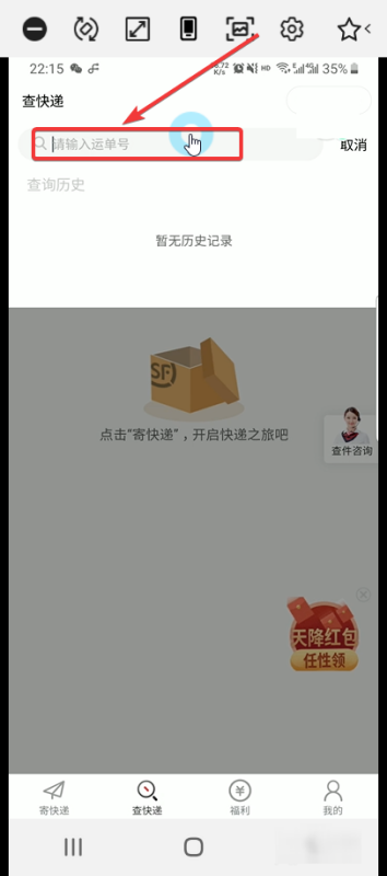 直接点击顺丰搜索结果下的“查快递”。