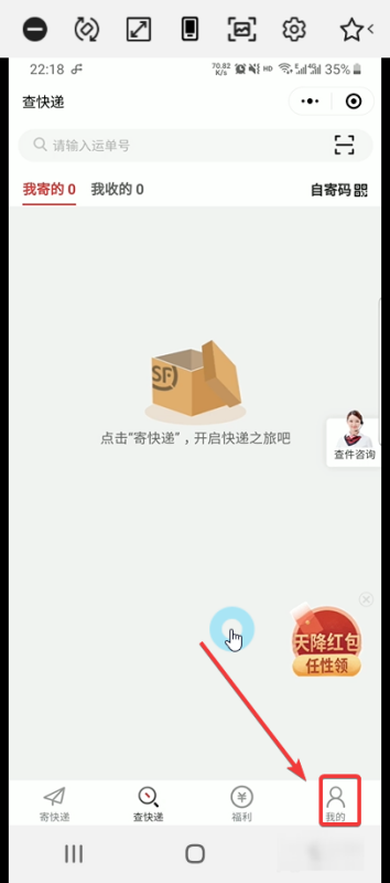 4、如果是你的快递,不记得订单号,点击下面的我。