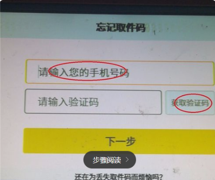 3、按提示输入手机号码,然后获取验证码,输入验证码后即可重复获取新的取件码。