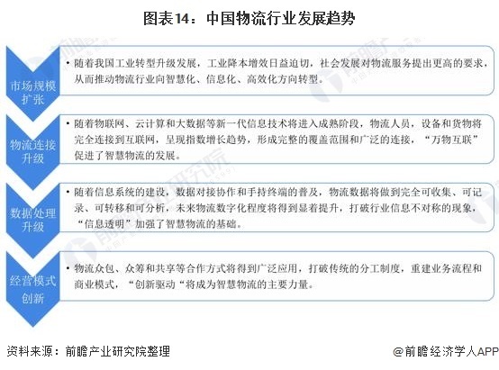 国家层面推进物流职业降本增效,进步整个社会的货品流转工作功率,一起新零售的提出对仓储运送环节的功率提出了更高的要求。在运送和配送环节,继快递之后,货运环节的龙头实力不断增强,对无人车和无人机的规划化运用正在逐步加深,经过智能硬件、物联网、大数据等才智化技能与手法,进步物流系统剖析决议计划和智能履行才能的才智物流将成为职业开展首要趋势,未来才智物流商场将进一步扩张,职业开展将朝向物流衔接晋级、数据处理晋级和运营形式不断创新的方向开展,跟着才智物流的大规划使用,结构不断优化,交融新理念、新形式、新技能、新业态来发挥才智物流的优势,将推进我国物流业的革命性开展,完成物流职业的转型晋级。