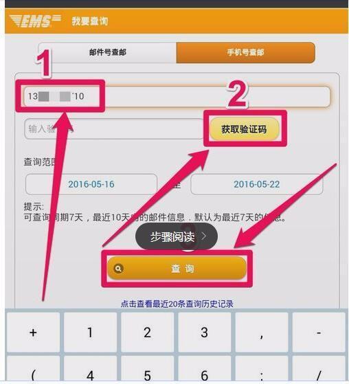 3.先输入手机号,当然是此单快递预留的手机号,再点“取得验证码”,把收到的短信验证码填入到“验证码框中”,接着点“查询”。