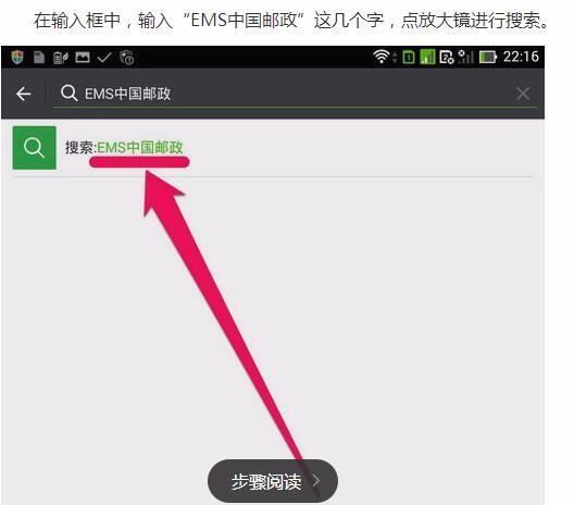 在查找成果中,会显现“EMS中国邮政速递物流”,这一项一般也会在最上面呈现,点击翻开。