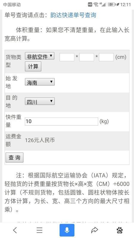 韵达快递从海南省至成都二十斤生果要多少钱_快递鸟