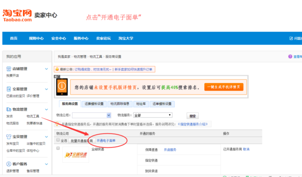假如你要用菜鸟电子面单的话,在淘宝后台——卖家中心——物流东西里注册,如图: