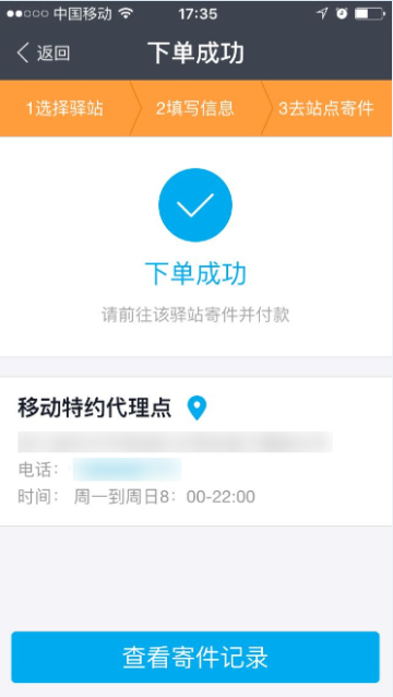 6 下单成功,前往所挑选的菜鸟驿站站点进行寄件