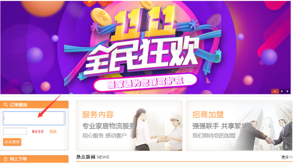 2.进入居家通官网,在主界面左面输入订单号即可查询物流信息。