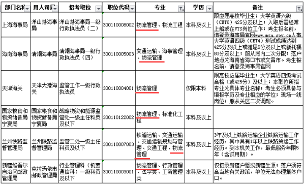 或参阅2021年度国考公务员考试,面向“物流办理”专业招录的岗位,比方: