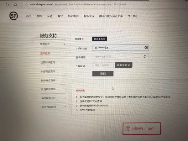 2、官网咨询客服,问询客服要【运单追寻】链接,翻开输入手机号、验证码就行了。