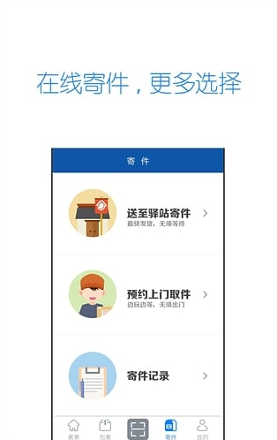 u3000u30004、体系主动定位附件寄件站点,用户手机提交订单,站点供给电子面单等无需手写的增值服务,轻松寄件,官方授权服务有保证;一起,供给干流快递的服务热线,用户也可预定快递员上门取件;