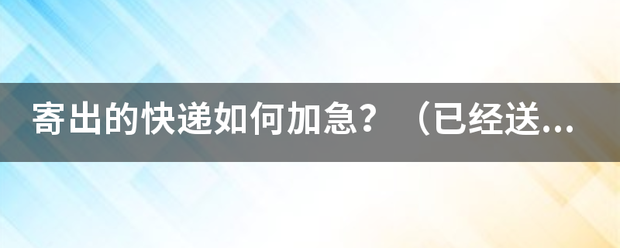 寄出的快递怎么加急?(现已送出去了,能够追加急吗?)