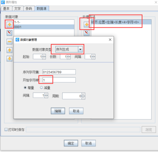 2、在点击增加,数据目标类型挑选”序列生成“,点击修改,并点击”+“处理办法,补齐,左端,长度4。