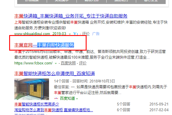 第二步:点击查找出来的成果,进入“丰巢官网-丰巢自助快递服务”官网。