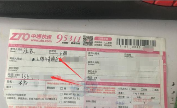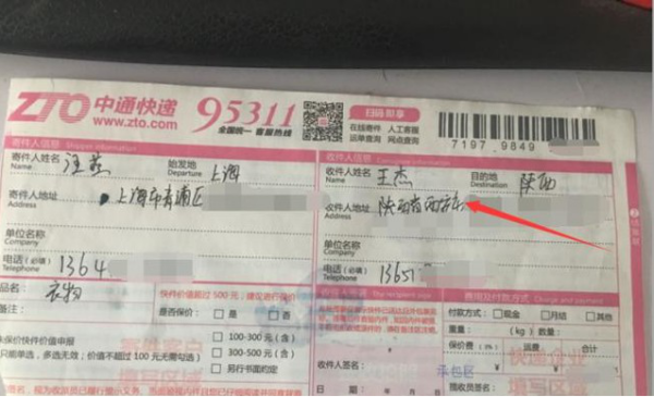 8、最终便是收件人电话,也是十分要害的,要填写正确,避免货到当地没办法联络收件人,单位一般不需要填写,这样中通快递单就填好了。